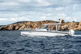 Mercury 4-stroke V6 2x 200 HP - incl. Stainless steel propeller - white incl. lake constance verification Manual sliding roof with harbor cover Roof lights L-shaped bench in bow with storage lockers Harbor covers U- Sofa Adventure collection Mediterrana Edition U Sofa Mediterrana Softdecking Antifouling incl . Osmosis protection , free choice of color Bowthruster Bow anchor windlass Trim tabs with joystick Shore power 230V with batterycharger Search light Deck lights Top Loading refrigerator Freshwater System Shower on aft deck (only with freshwater option) MOORING PACKAGE WITH ANCHOR 7,5 kg Axopar Roof Rack Waterski arch Electric remote main switches (supply and motor) - double motorization Additional bathing ladder with high handles Toilet electric, fresh water flush (only with fresh water option ) Simrad Plotter, NSX 12" Intelliducer, Depth and Temp Tru Hull Premium Audio Package JL Audio Front U-Sofa Package U-Sofa cushion extended package Cushions on fender boxes Sun shade front deck Delivery flat rate Transport Shipyard - Traben-Trarbach -Bodensee Lake Constance Waste and Greywater