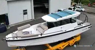 AXOPAR 29 XC Cross Cabin – Nouveau bateau disponible avec 1 x 400cv Mercury V10. Contactez-nous pour informations complètes. Emplacement disponible. La toute nouvelle gamme Axopar 29 est le fruit d’une écoute attentive des clients, chaque détail a été amélioré pour plus de fonctionnalité, d'usabilité et de qualité, tout en rendant hommage à l'Axopar 28. Toujours multifonctionnelle, cette nouvelle génération reste une référence du rapport qualité-prix dans la catégorie des <30 pieds. La nature modulaire vous permet de personnaliser le bateau à vos besoins (siège arrière, module bar, ou cabine arrière). La version Cross Cabin propose un vaste pont arrière ouvert. La ligne BRABUS propose des finitions et détails exclusifs. Expérience de conduite optimisée : cockpit spacieux, meilleure ergonomie, visibilité 360°, accès facilité pour la manœuvre mais aussi pour la sécurité à bord (marches intégrées, mains courantes, zone anti-dérapante). L’espace intérieur et extérieur est maximisé pour multiplier les usages : multi-cabine avant (rangement/toilettes/couchettes), cabine arrière optimisée, réfrigérateur et évier possibles, pont avant modulable (canapé en U...), plates-formes de bain étendues. Bateau personnalisable pour les aventures toute l’année.