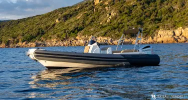 Lignes tendues, flotteurs finition carbone, poste de pilotage épuré : ce semi-rigide de 7 mètres attire immédiatement le regard. Construit en 2023, le Falchettu 700 incarne le parfait équilibre entre élégance, performance et fonctionnalité.