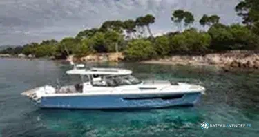 Inclus deux Mercury Verado V10 400ch blancs avec commande JPO. T-Top électrique, sellerie Spradling Maglia Indigo & Silvertex Storm, plateforme de bai...