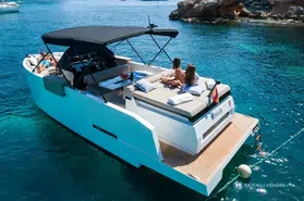 Le De Antonio Yachts D29 est un modèle de vedette open de 8 mètres, qui succède au célèbre D28 en apportant une touche rafraîchissante au design tout en préservant l'ADN de son prédécesseur. Ce bateau arbore une console de pilotage ergonomique, équipée d'un double écran panoramique pour une navigation intuitive. Les versions hard-top et softop ajoutent à son esthétique, offrant des choix variés pour le style de navigation. À bord, le D29 se distingue par son aménagement réfléchi, avec une vaste zone de pont, un carré en U sur la plage avant, et un espace intérieur confortable comprenant une couchette double et une salle de bain complète. Le tout est pensé pour garantir une expérience agréable en mer, alliant confort et fonctionnalité, le tout dans une élégance moderne.
