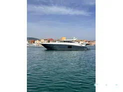 Available for rent on the French Riviera with OPALE MARINE, the Princess V62 is an exceptional yacht that embodies elegance and performance signed Princess Yachts. With its 19 meters in length, it offers spacious areas and high-end comfort for unforgettable cruises departing from Cannes. Its large cockpit, equipped with a dining area and a sunbathing platform at the back, creates an ideal setting to relax facing the Mediterranean. At the front, a large solarium allows full enjoyment of the sun in an elegant and convivial environment. The luxurious interior comprises a spacious salon flooded with natural light, a fully equipped kitchen, and three refined cabins with private bathrooms. Capable of accommodating up to 12 passengers during the day, it is perfect for a friends' outing, a private event, or a family getaway. Its powerful engine ensures smooth and efficient navigation along the Azure Coast. From Cannes, explore the crystal-clear waters of the Îles de Lérins or cruise along the most beautiful anchorages of the Riviera. Chartered with a professional crew, the Princess V62 guarantees an exclusive experience blending luxury, comfort, and sensations at sea.