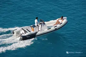 Ruote gonfiabili Ø 36 cm, a sezione larga, montate su bracci e articolazioni in acciaio inox a vite sul pannello di poppa. Sollevamento e abbassamento facili ...