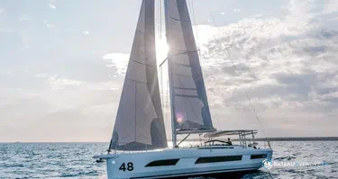 VHF, pilota automatico, radar, rispettore, randa e genoa BE, spi, paranaso, toeletta elettrica, pannelli solari, generatore, desalinizzatore, frigoriferi, cucina