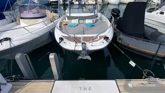 In versione leaning post, questa imbarcazione è pensata per il piacere e la funzionalità: il cockpit dispone di una cucina esterna con frigorifero integrato, il T-Top protegge dal sole mantenendo una visibilità perfetta dalla plancia di comando. Il pacchetto elettronico Garmin e il pacchetto audio Fusion offrono una navigazione moderna e conviviale, mentre il propulsore di prua, i flaps elettrici, il fondo del cockpit in Lindeck e il prendisole anteriore assicurano comfort, controllo e relax ad ogni uscita.