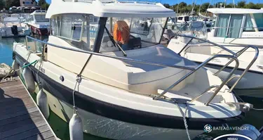 Per un comfort di pesca ottimale, può essere installata una seconda postazione di pilotaggio esterna. Infine, è possibile installare sedili e tavolo sul ponte, così come un tettuccio Bimini che permette di godere del comfort della barca rimanendo all'ombra e in relax.
